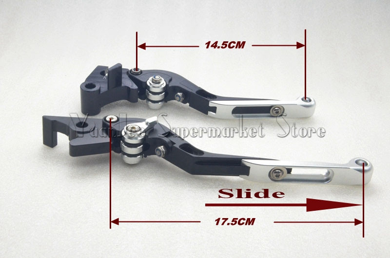 Universal 7/8" 22mm Motorcycle Hand Grips Brake Clutch Levers Protector Guard For SUZUKI GSX-R 600 750 1000 K6 K8 K9US $ 33.89/set"Складной"В основном работает на защиты когда велосипед происходит сбой,Он может сложить автоматически уменьшить по крайней мере повреждения вашего велосипеда. И затем, "Выдвижная"Работает на функцию личные настройки,Вы можете настроить в зависимости от ваших предпочтений,Длиннее или короче. Эта пара рычаги тормоза и сцепления совместимы с моделями: .Suzuki hayabusa/gsxr1300 1999-2007 . Suzuki GSX650F 2008-2015 . Suzuki GSF650 Бандит 2007 . Suzuki GSX1250 F/Sa/ABS 2010-2015 . Suzuki GSF1250 Бандит 2007-2015 . Suzuki DL1000/V-STROM 2002-2015 . Suzuki GSF1200 Бандит 2001-2006 Спецификация: