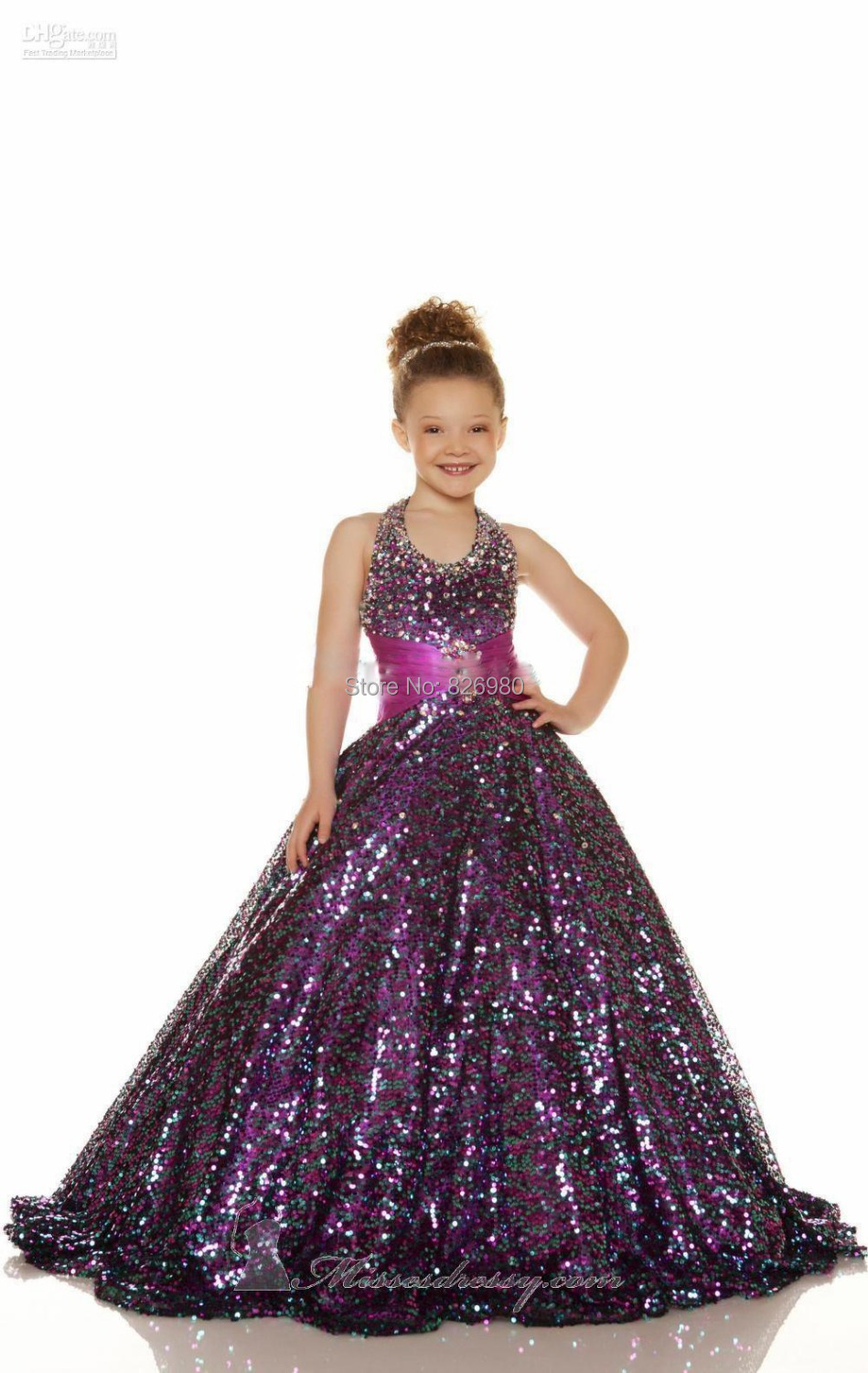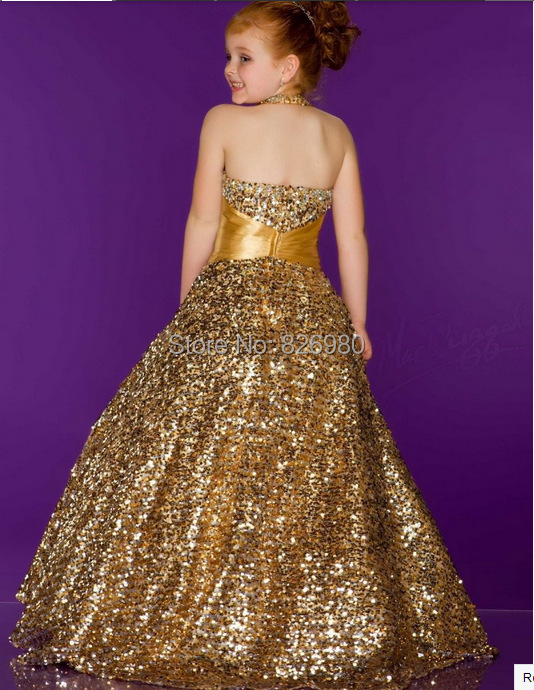 Потрясающие красивые девушки Pageant платья с блестками Дети вечернее платье Холтер бальное платье Цветочница платье сшитое