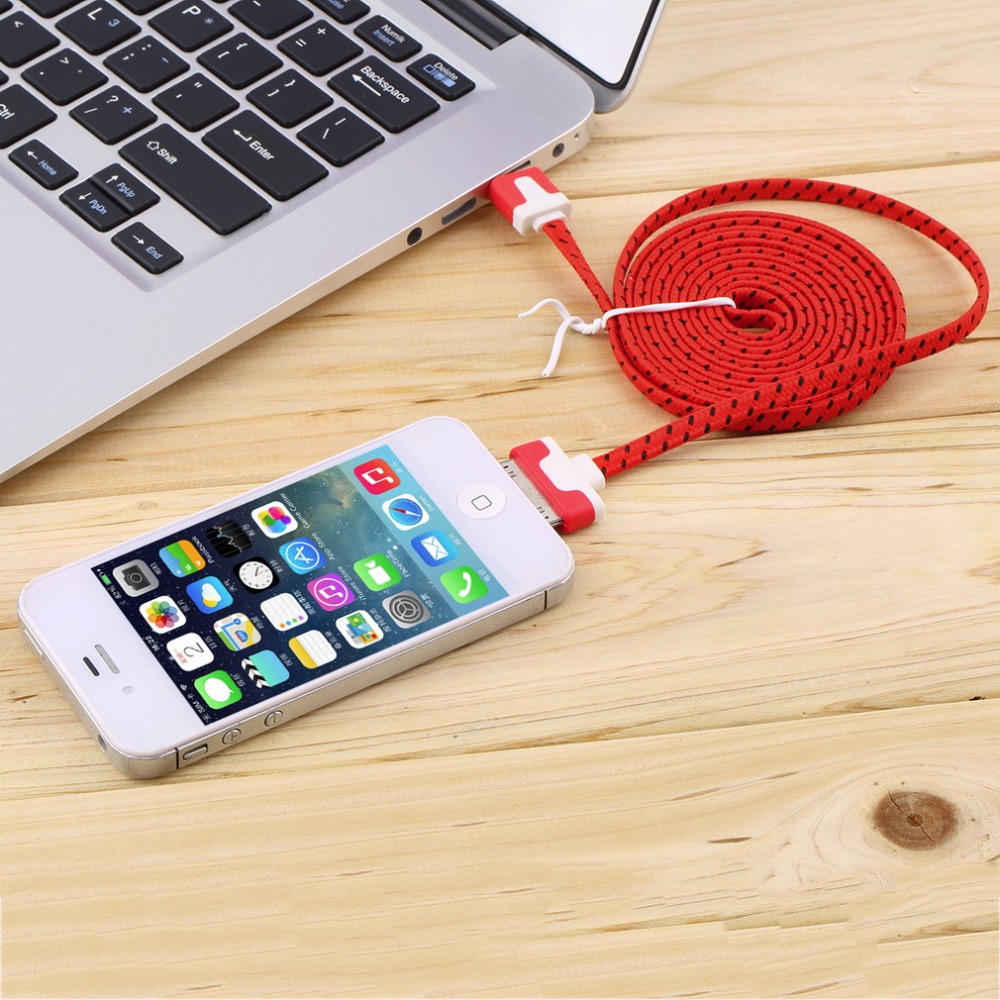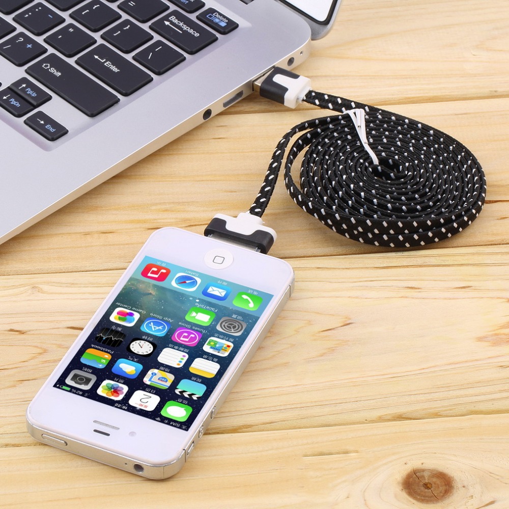 2 м плетеный плоским 30 контакт. USB синхронизации данных зарядный кабель заряжателя шнур для iPhone 4 4S 3 г YKS