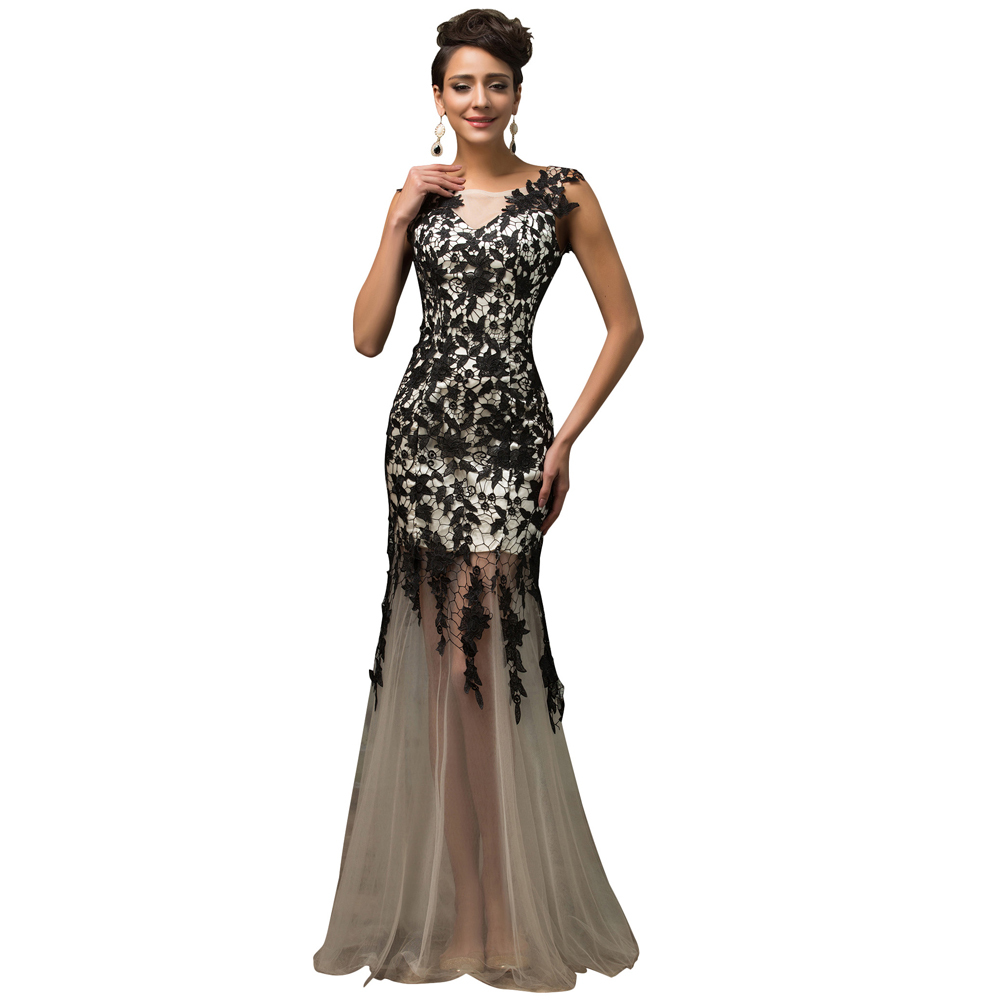 Wholesale cheap long black evening dress 2015 GK mother open back design lace chiffon special occasion dresses robe soiree 7584USD 50.13/piece