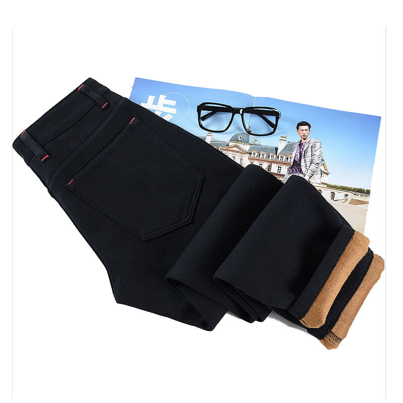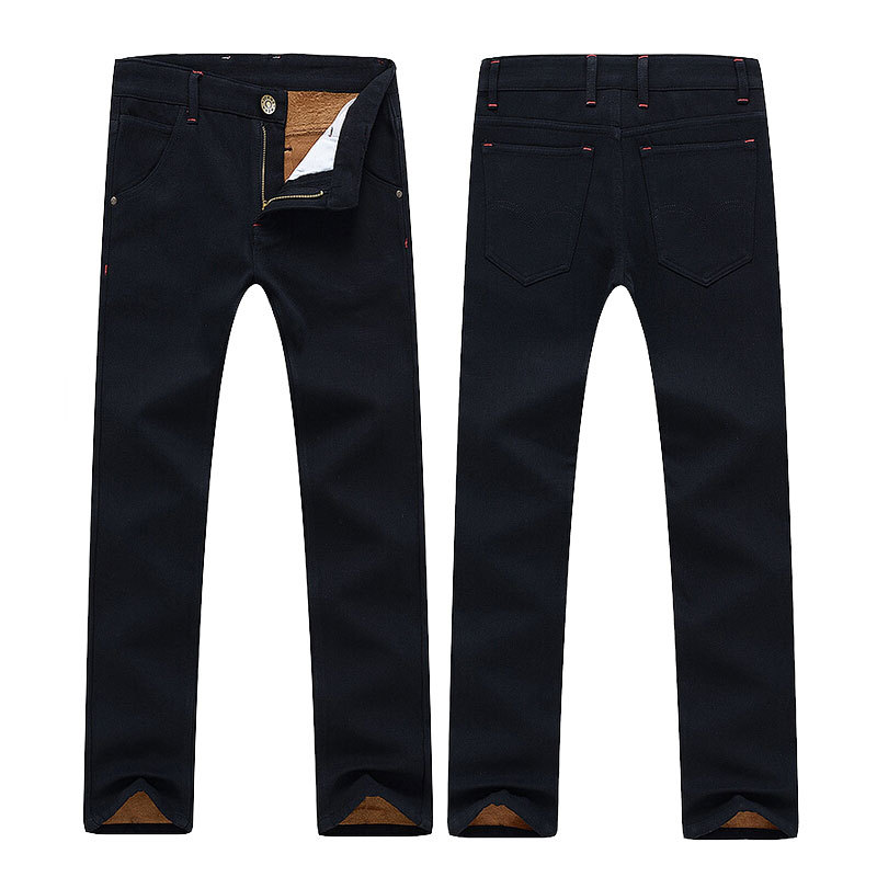 Осень и зима мужчины в джинсовый брюки, Свободного покроя мужчины в джинсы брюки прямой и приталенный Fit джинсы 31