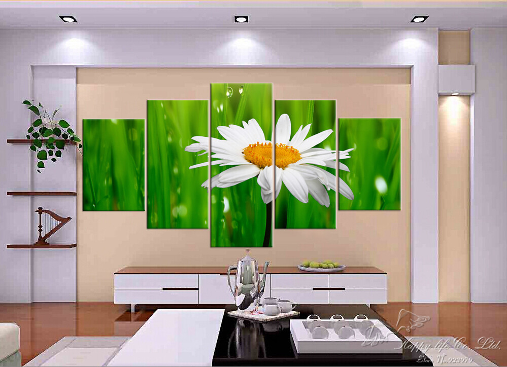 5 панель современная живопись главная декоративное искусство в искусстве краска на холсте печать зеленая трава из штамма чистый белый ромашки