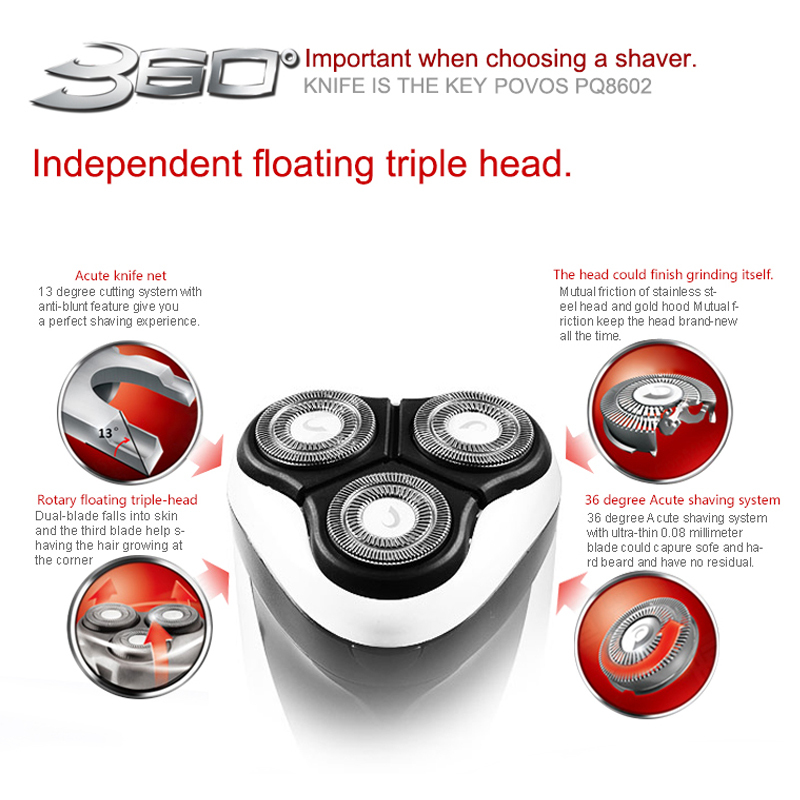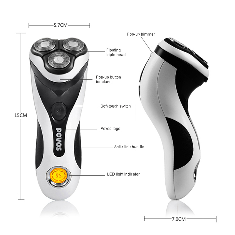 Povos мужская моющиеся аккумуляторная ротари электробритвы бритва с откидной триммер 3D плавающей структура PQ8602