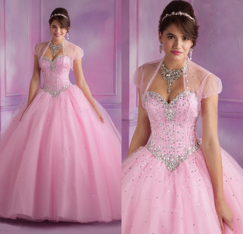 2015 Последние Дизайн бальное платье королевские платья розового платье с жакетом платье 15 Милая бисером лиф